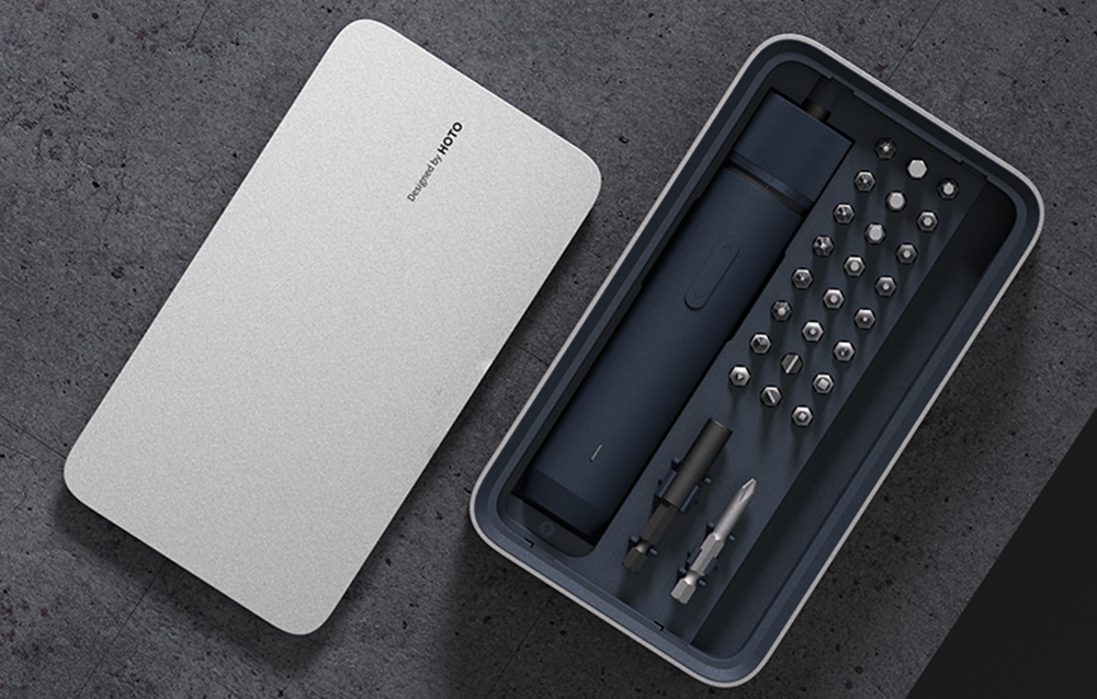 Uniwersalny elektryczny wkrętak precyzyjny HOTO z 25 bitami. Idealny do smartfonów, laptopów, okularów i drobnego AGD. Solidna kaseta i szybka wymiana bitów.